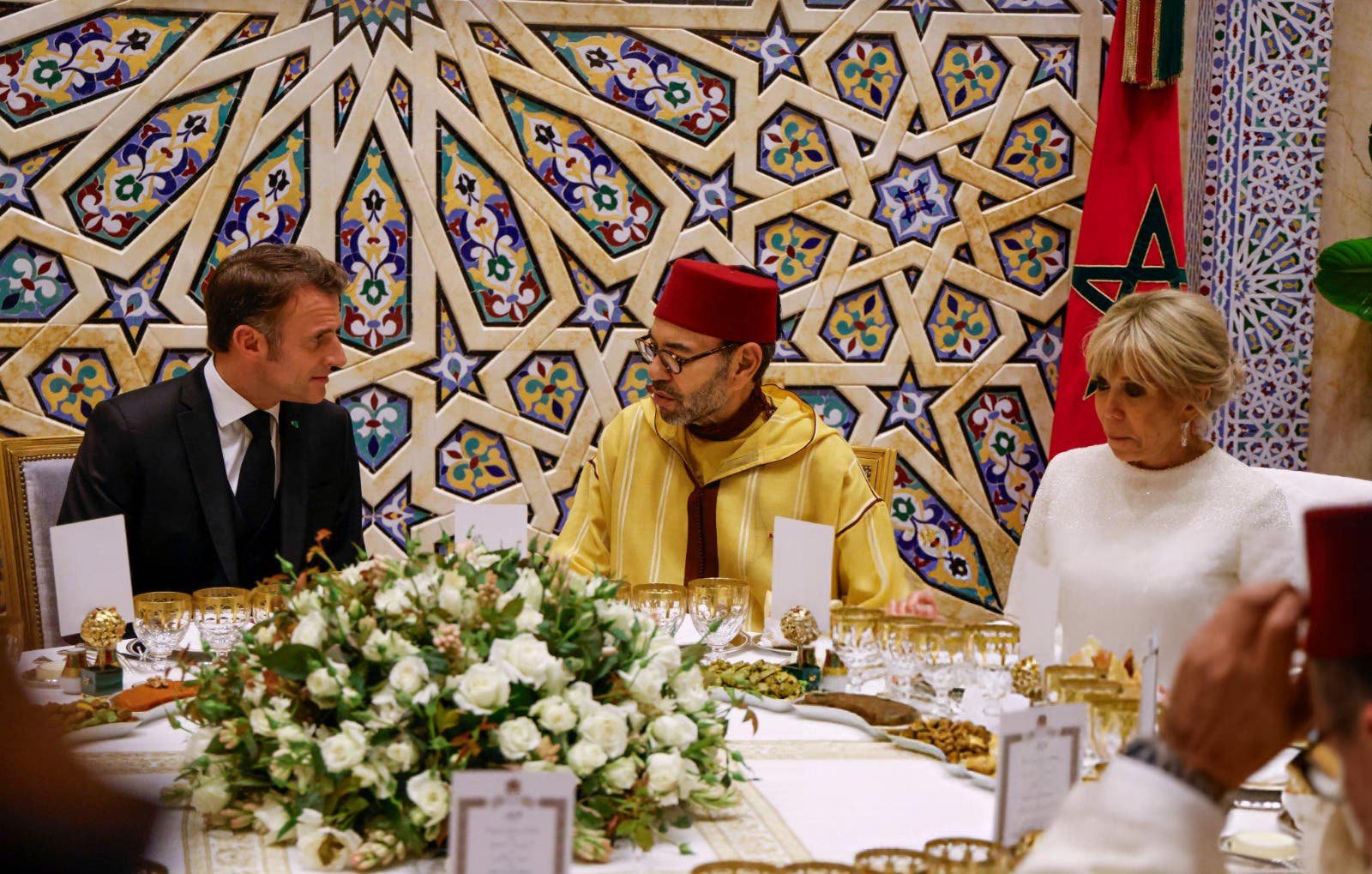 أقام الملك محمد السادس، مأدبة عشاء على شرف الرئيس الفرنسي إيمانويل ماكرون وبريجيت ماكرون.